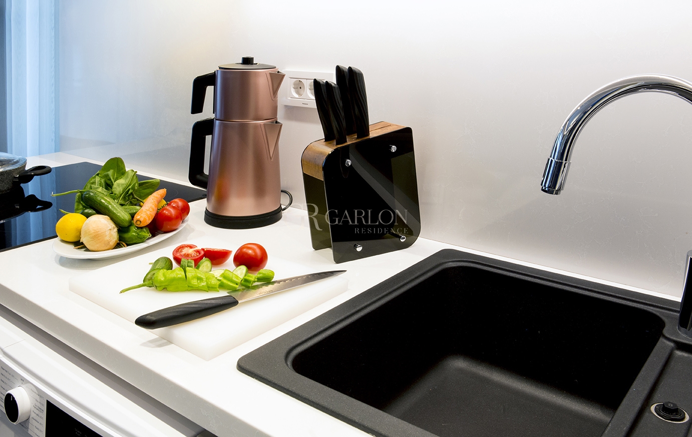 The fully equipped kitchen includes a stove, refrigerator, dishwasher, and various kitchen utensils, allowing guests to prepare their own meals. Additionally, there is a washing machine, soundproof walls, a tea maker, and a flat-screen TV with cable channels. The apartments offer city views.