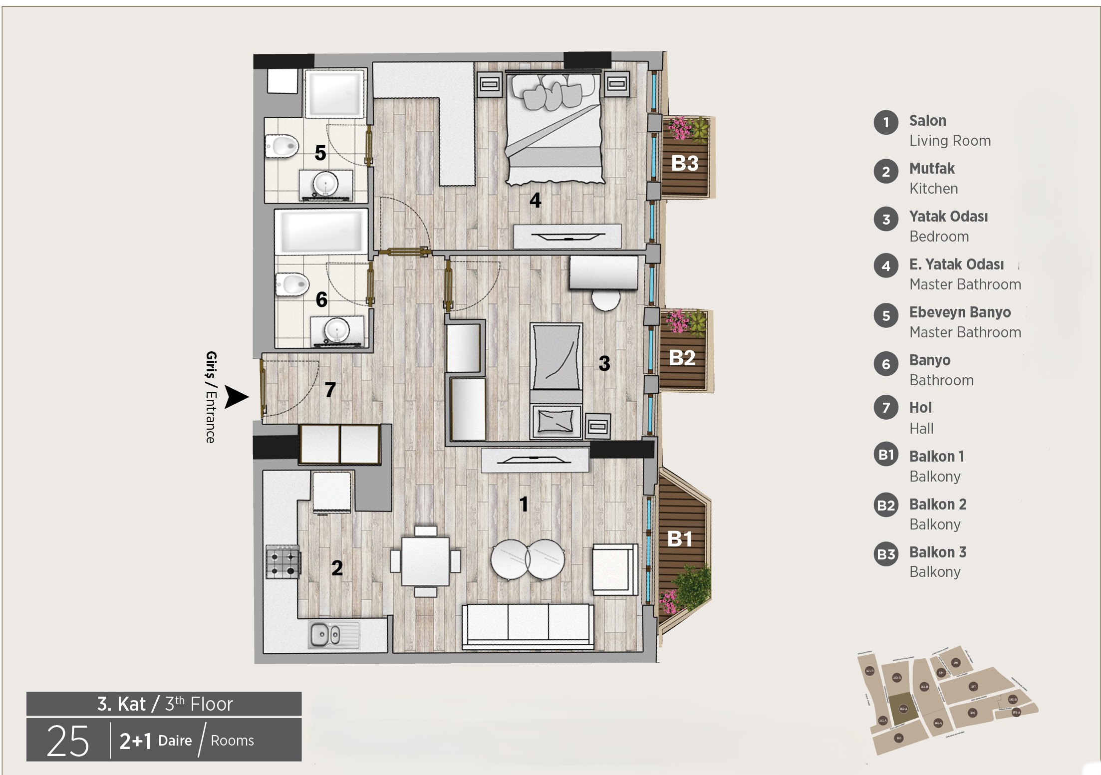 The information provided on our website and in our promotional materials is intended to provide general information about the services, facilities, and amenities offered in our residences. The specified features may vary depending on the apartment type, block location, floor plan, and seasonal conditions. Reservations are only accepted based on apartment type and block category, and no guarantee is given regarding a specific apartment number or location. Guest requests are evaluated based on availability, and the most suitable apartment within the reserved category is allocated.