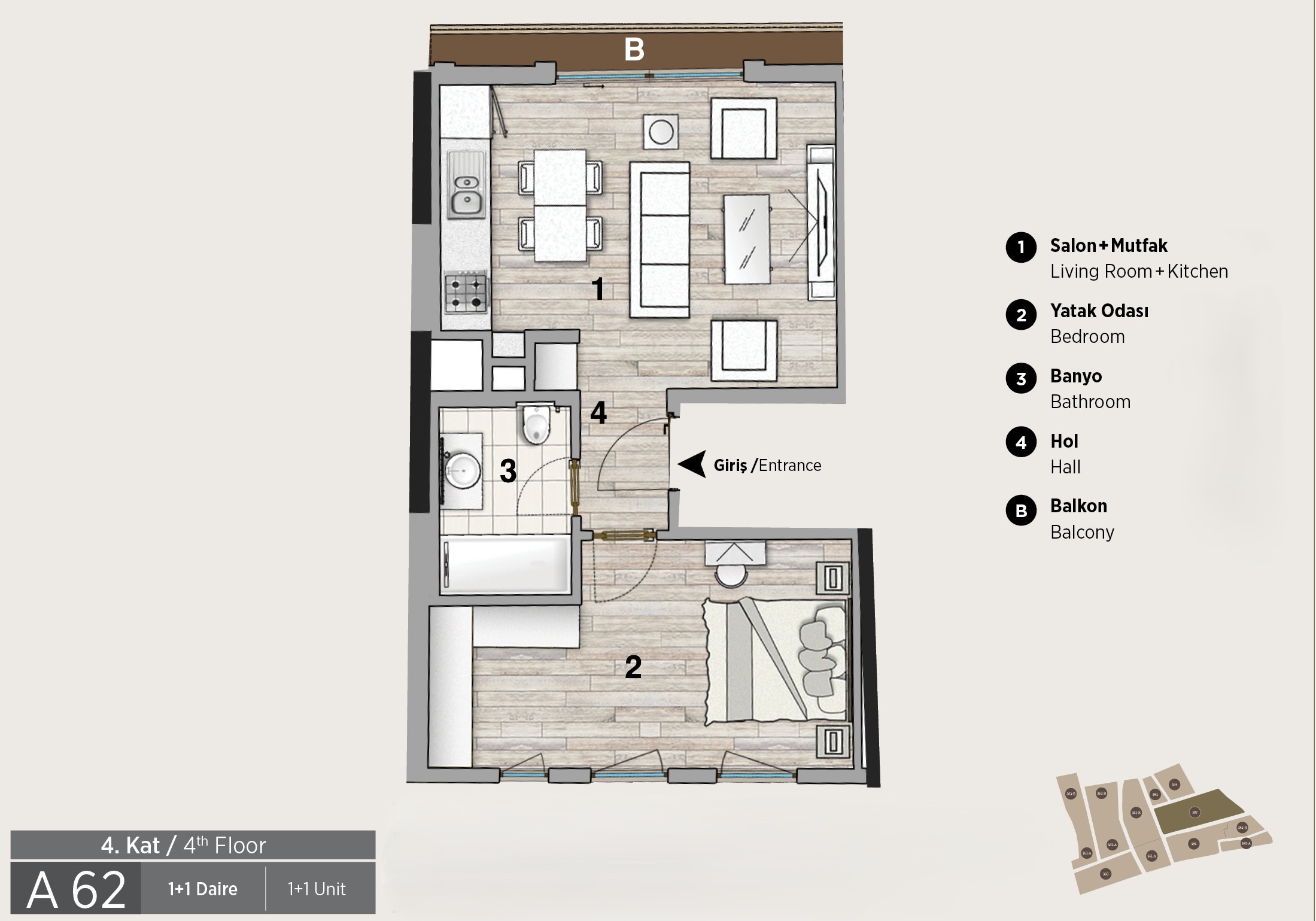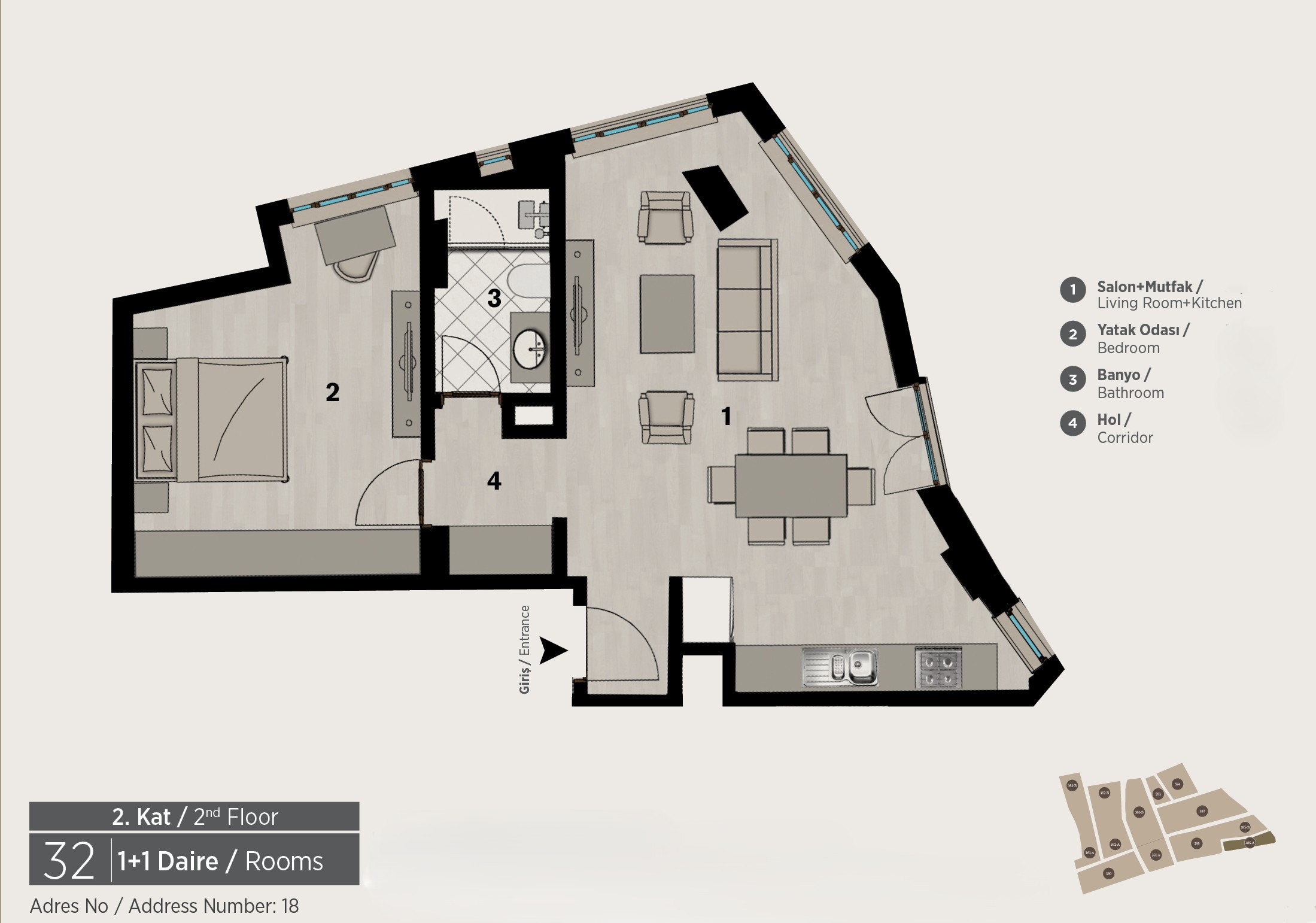 GR2 362 A 32 32 3354 1+1 Dubleks Daire 4 - 2 1 - -